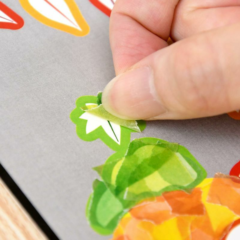 - 絵柄シールを透明袋からはがし、下絵シートに貼り重ねます。