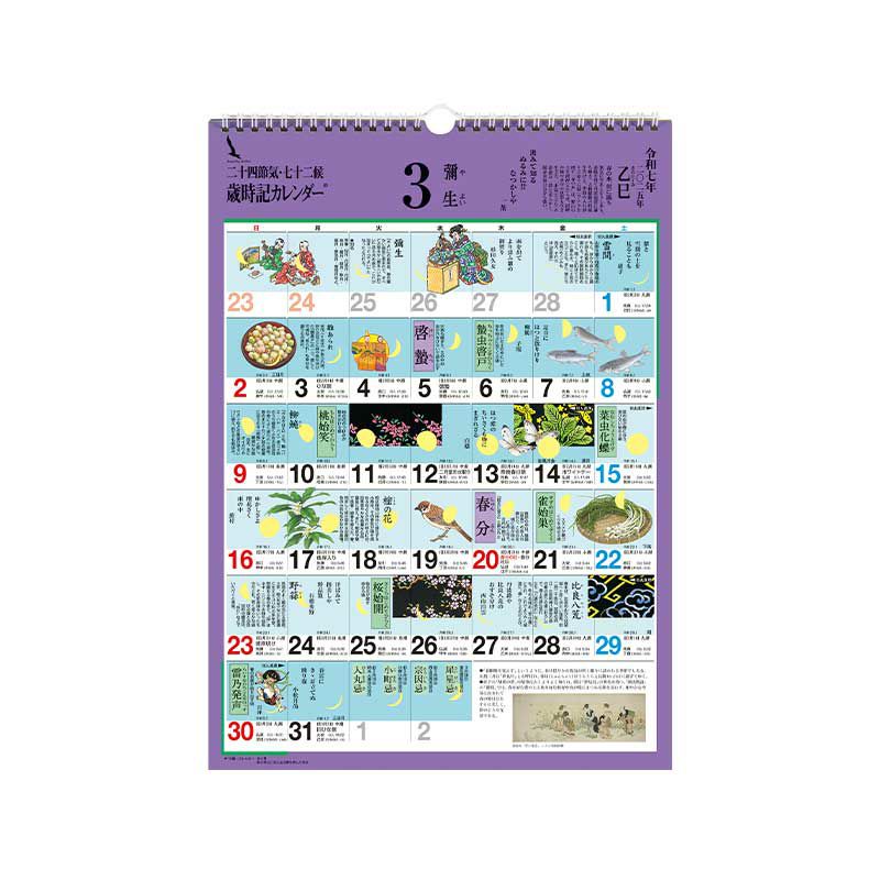 旧暦も併記した季節を感じるカレンダーです。二十四節気、七十二候を中心に、旬の食べ物、伝統行事や日本のしきたりなどを解説。俳句・お茶など『和』を楽しむ方、必携です!