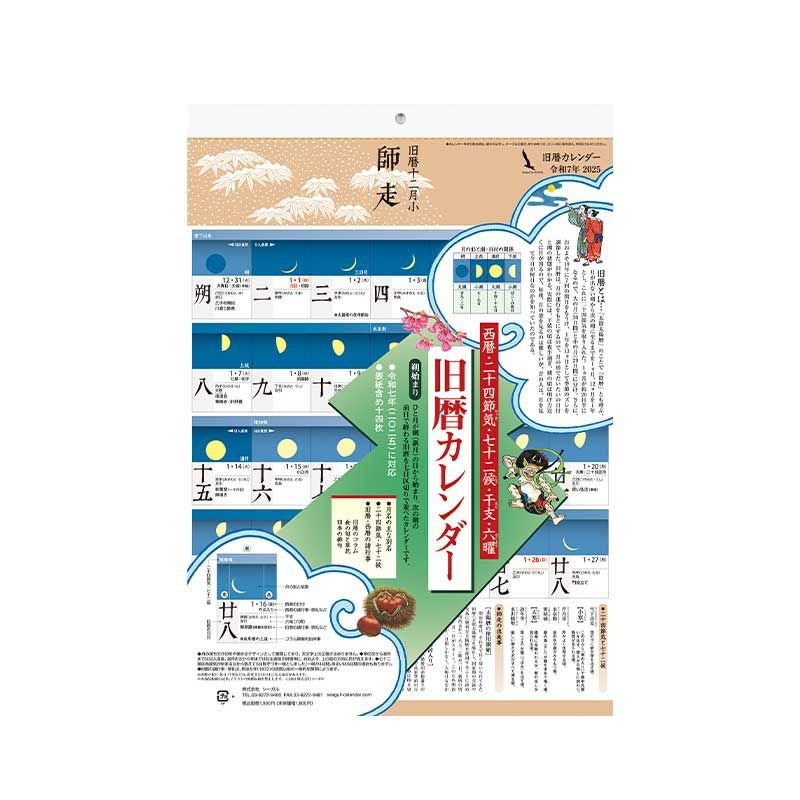 旧暦も併記した季節を感じるカレンダーです。二十四節気、七十二候を中心に、旬の食べ物、伝統行事や日本のしきたりなどを解説。俳句・お茶など『和』を楽しむ方、必携です!