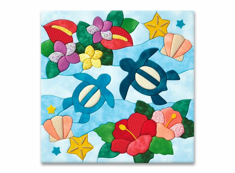 さくらあーと布や和紙を切って、下絵に貼るだけ。絵を描く楽しさを、どなたでも味わえます。 -