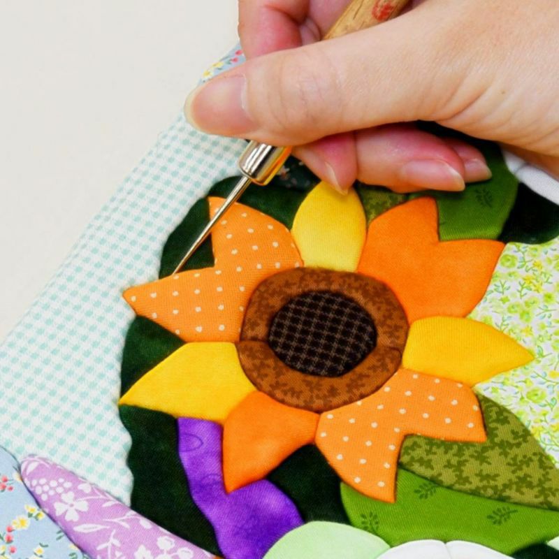 ちりめんやコットンなど素材の異なる布をはじめ25枚もの布を使用してリースを表現します。