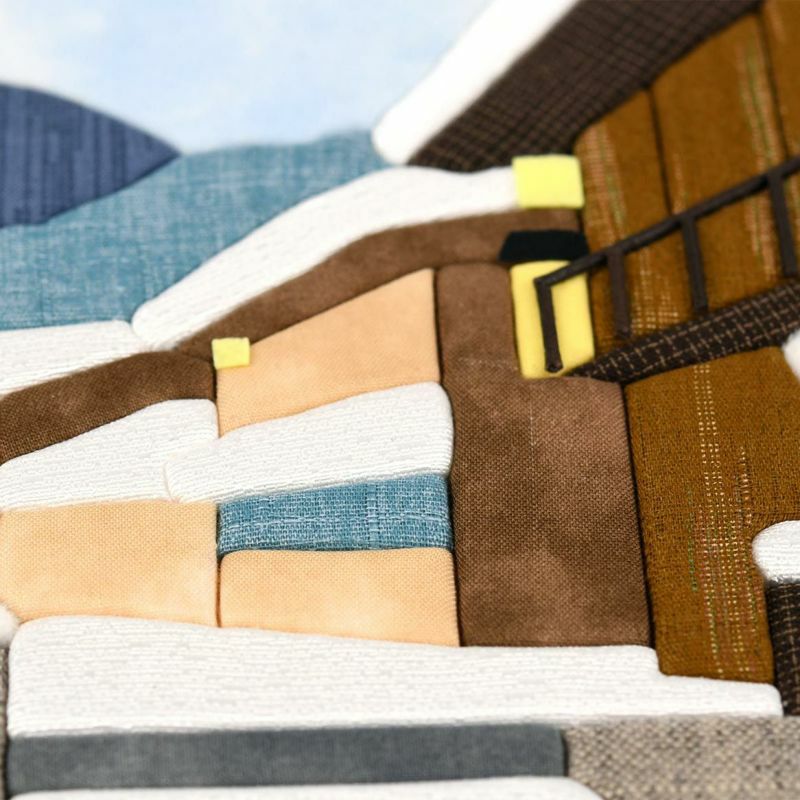 雪には2種類の布を使用しています。近い場所には、フワフワした質感のわた布を、遠い場所はジャガード生地を使い、陽の光にキラキラと反射する雪を表現します。