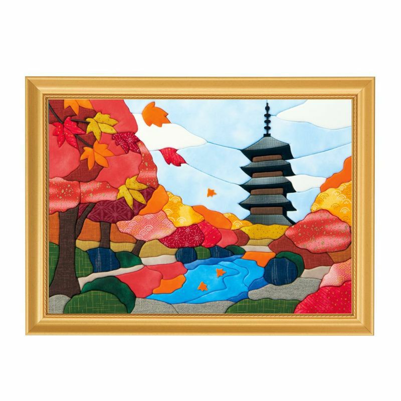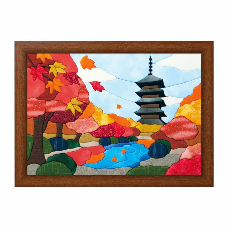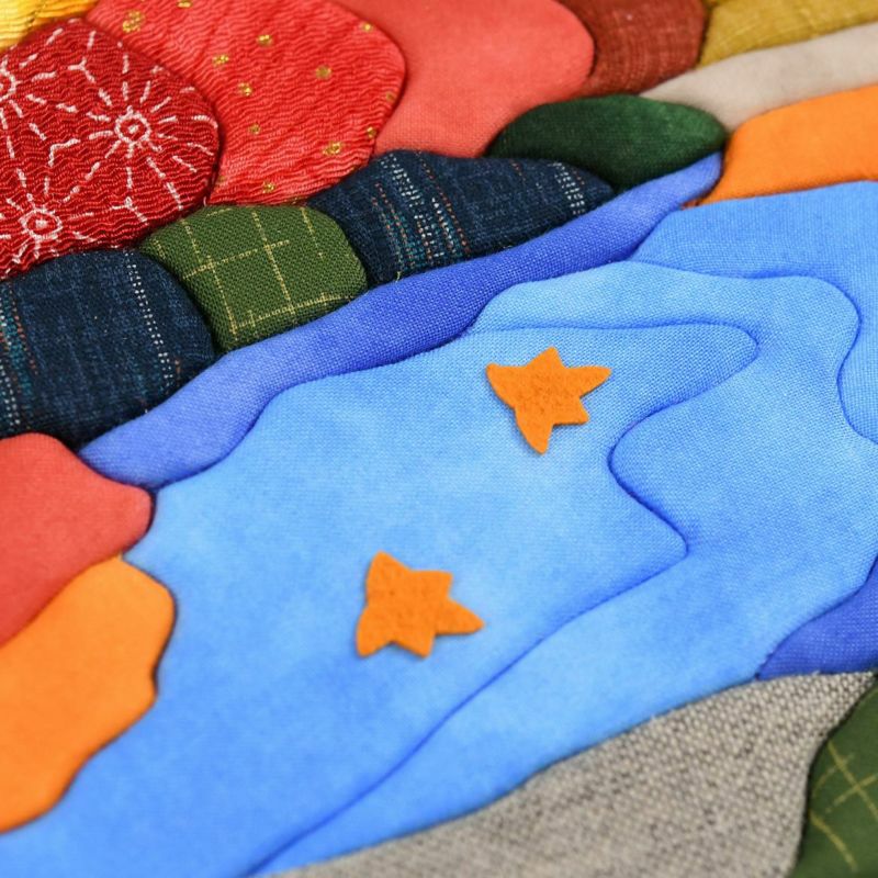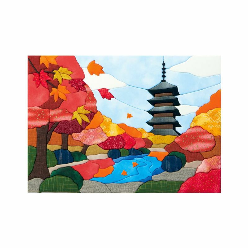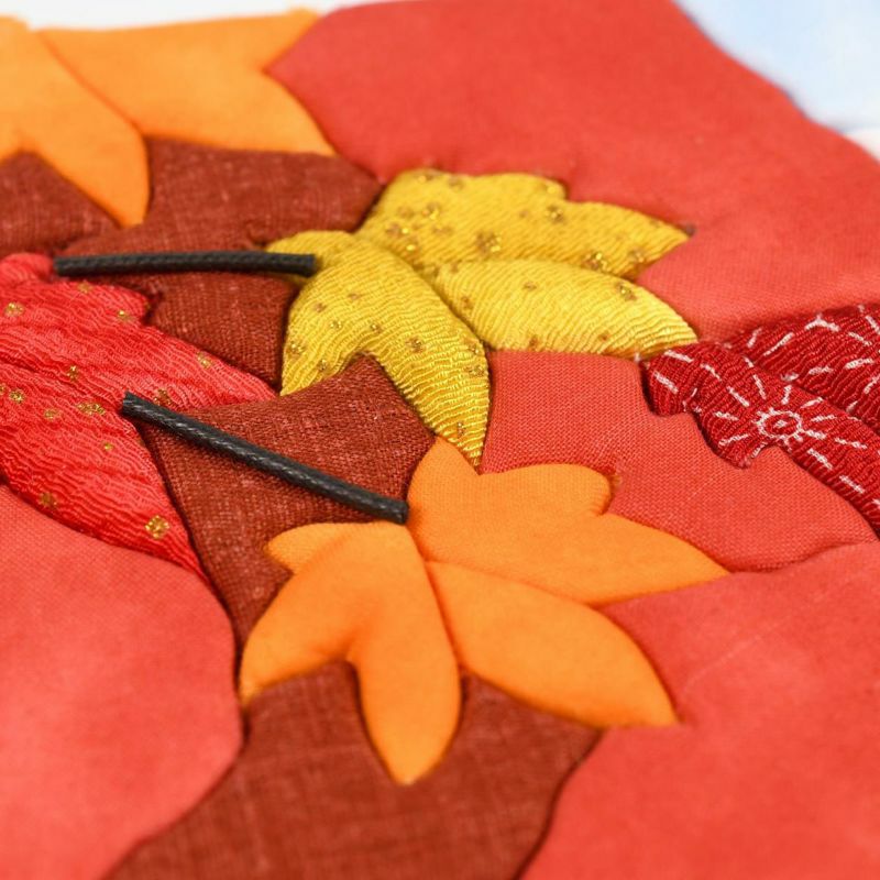 秋の庭園の豊かな色彩を表現するために、紅葉の黄色や赤い部分だけでも厳選された布を12種類も使用しています。