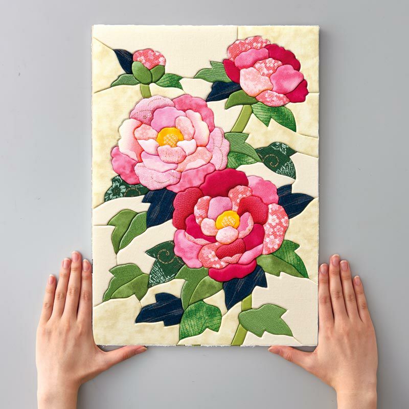 花びらには「繁栄」や「豊かさ」を意味する桜柄の布を使い、きめこみパッチワークならではの布遊びをお楽しみいただけます。