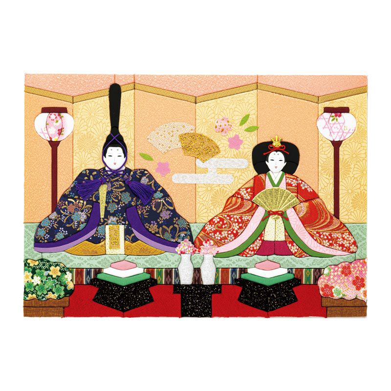 省スペースで飾れるコンパクトなお雛さま。金襴布のお着物が目を惹く豪華で美しい雛飾りは飾る場所をとらないので贈り物にも喜ばれています。