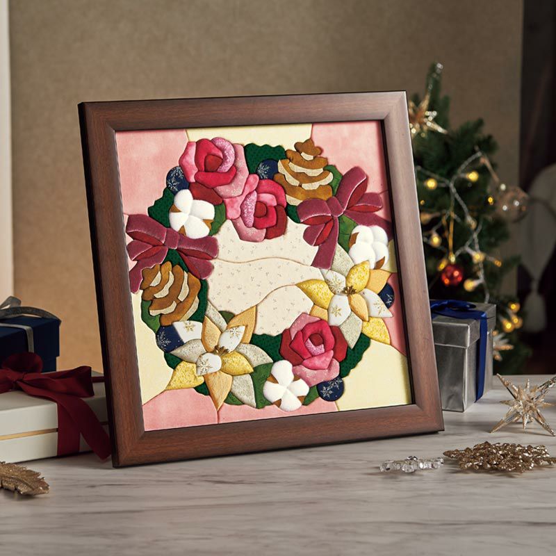 クリスマスの時期にはもちろん、冬の間も飾れるエレガントな額飾りです。