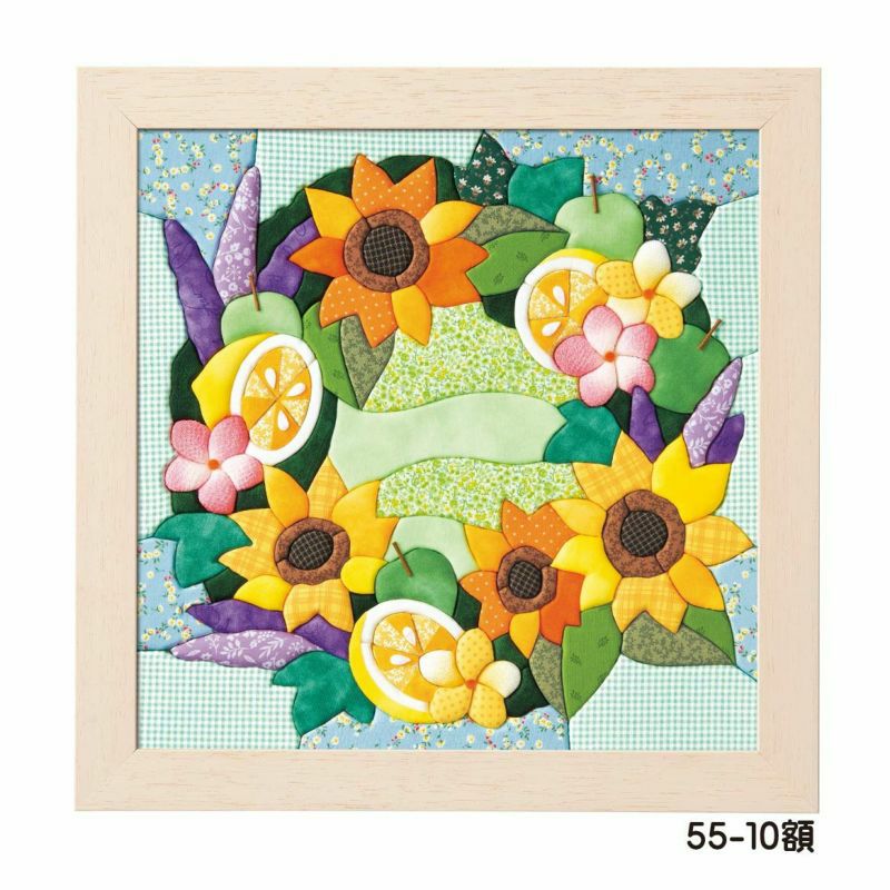 夏の花を詰め込んだ色鮮やかな花々のリース飾りは、別売り額に入れて飾るとお部屋も心も明るくなります。額装イメージ(55-6額)