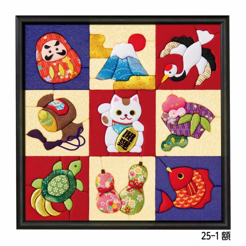 • 9つの縁起物が並んだ絵柄は、可愛らしくも落ち着いた雰囲気で通年飾ってお楽しみいただけます。額に入れて楽しみませんか?