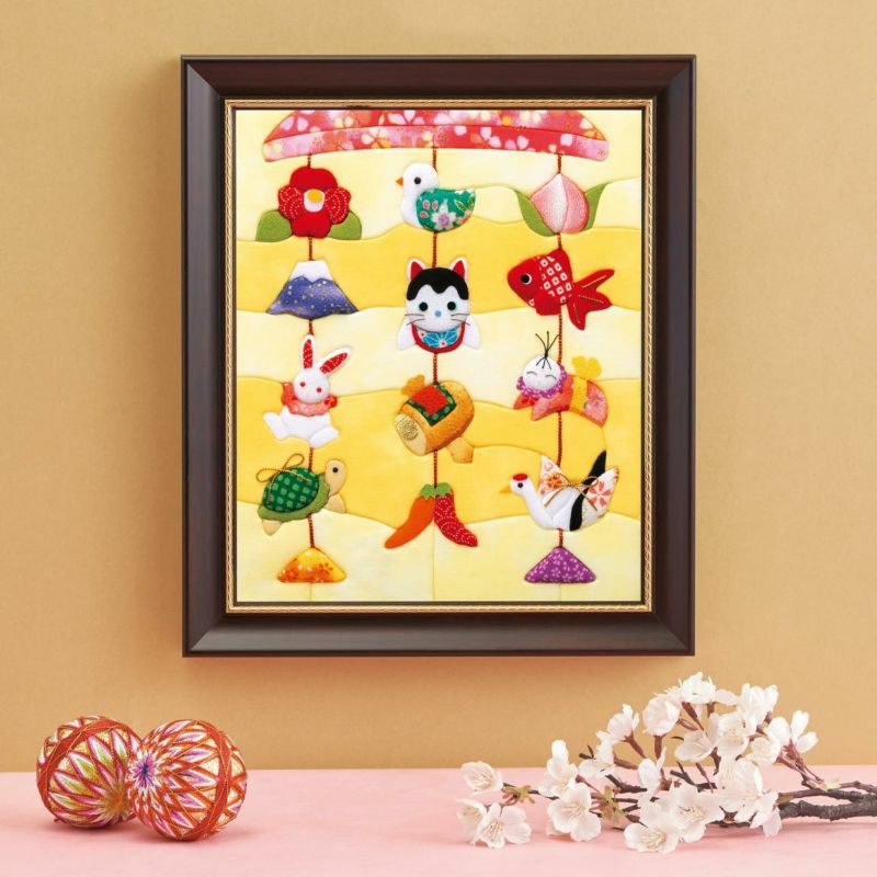 部分的にフェルト芯を入れてふっくらとした立体感を出します。縁起が良く見ているだけで可愛らしモチーフです。