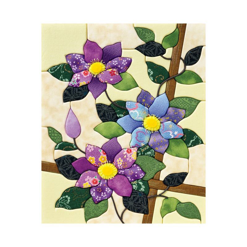 クレマチスらしい伸びやかな姿を表現する、つるの動きがこだわりのポイント。つるを表現するレーヨンコードは、ミゾに沿って貼るので作りやすい仕様です。