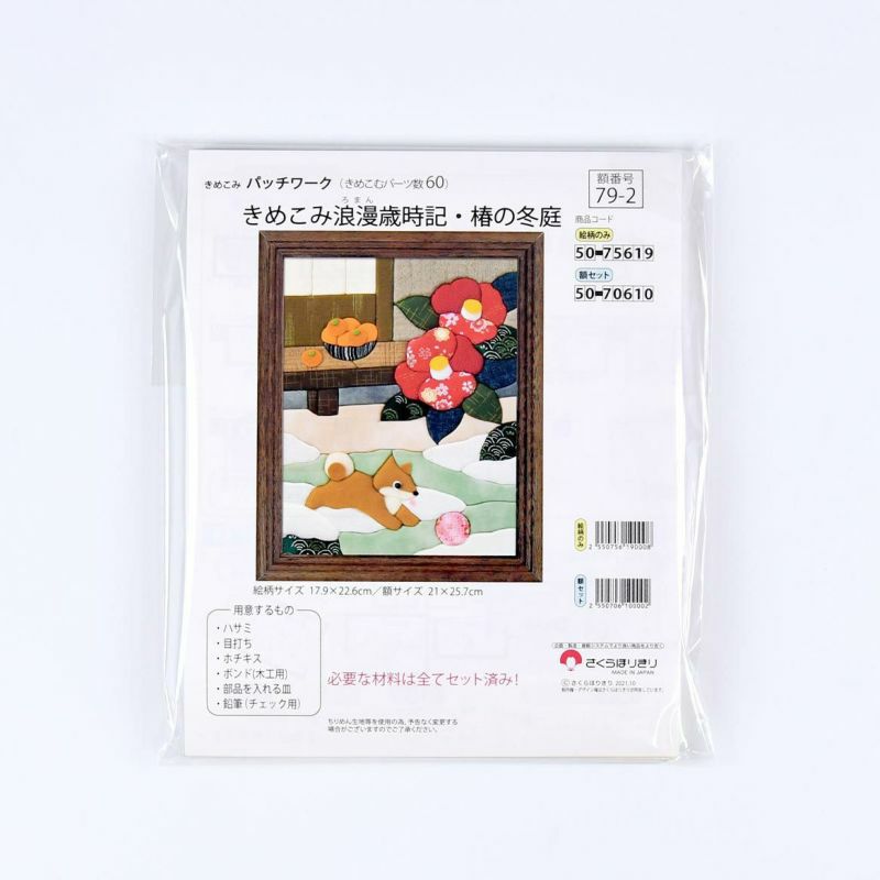椿は3種類の布を使って鮮やかに仕上げます。花びらや葉っぱには雪解けを表現するために部分的に金を入れています。
