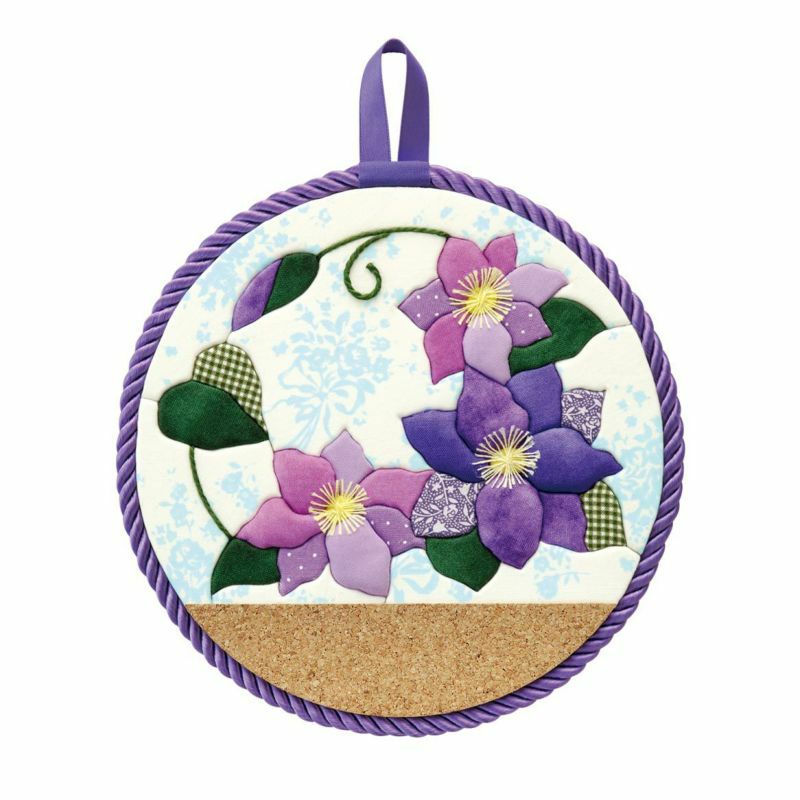 ぼかし布とワンポイントで柄布を使って、上品なテッセンにまとめました。花芯は紐を貼って繊細さを再現しています。