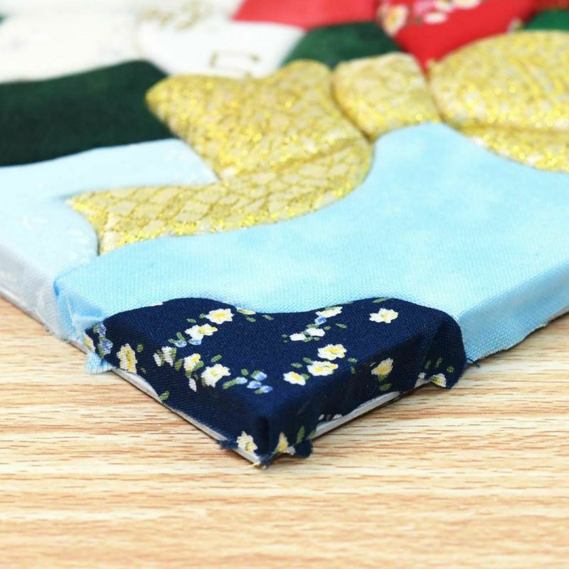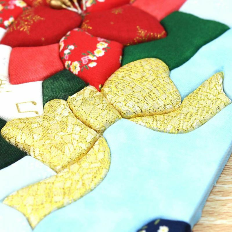 きらびやかな雰囲気を出すために、金柄の布や金ラメの生地で華やかさを表現します。比較的きめこみやすいコットン生地を使用しています。