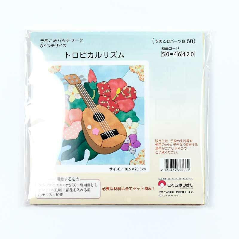 色鮮やかな18枚の布を使って、南国の明るく爽やかな雰囲気を表現します。全てきめこみやすいコットン布なので、初心者の方でも安心してお作りいただけます。