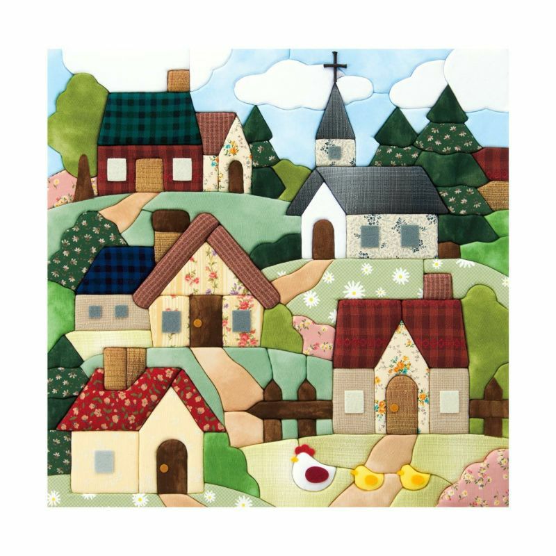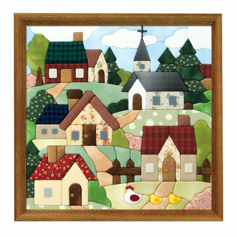 様々な柄布で可愛らしく表現されたキルトハウスの絵柄を飾って、お部屋を彩りませんか?