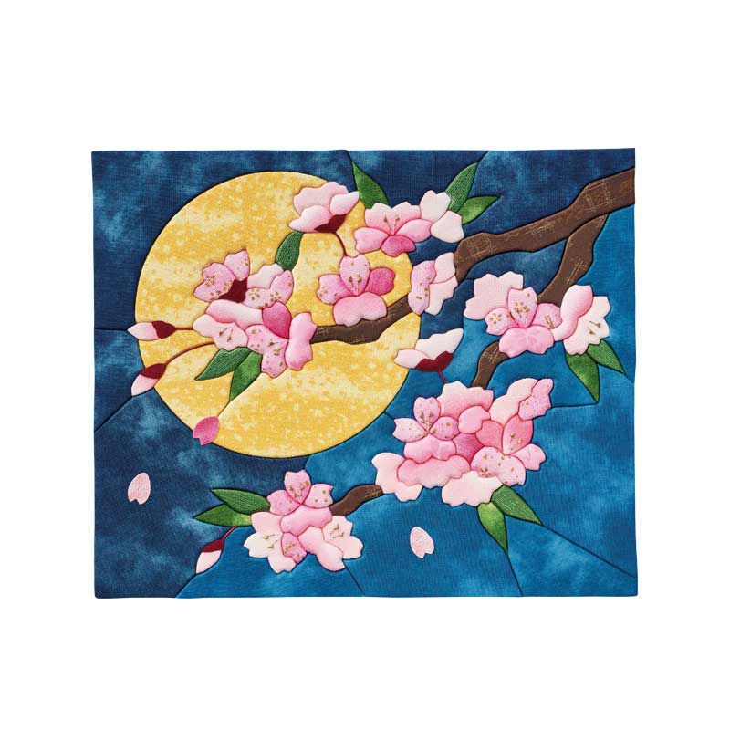 静ひつな月夜に映える、美しい桜の花。シンプルな絵柄だからこそ、こだわりの布選びが引き立つ完成度の高い作品です。時代を超えて愛されてきた情景を飾って、お部屋を優雅に彩りませんか?