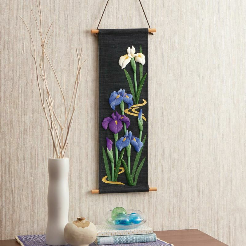 美しいグラデーションのちりめん生地を使い、自然の花の濃淡を表現できます。春から夏のお部屋に、清々しい彩りを添える壁飾りです。