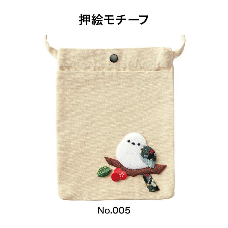 作るのは押絵のモチーフのみです。既製品のショルダーバッグに貼り合わせて完成です。
