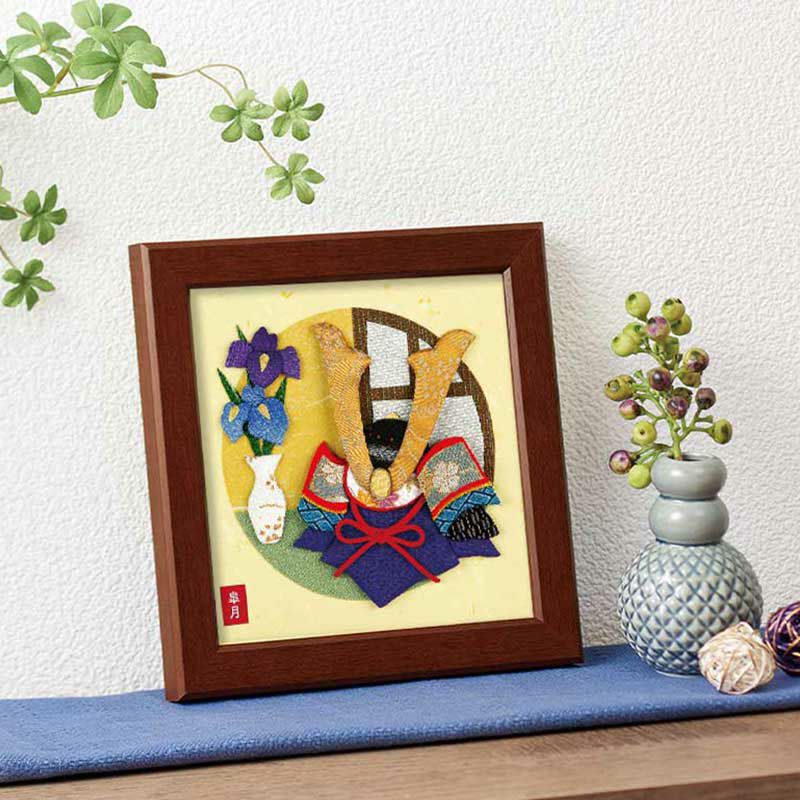 季節の風物詩を月ごとに楽しむ“押絵ごよみ"シリーズ。5月は危険から身を守り、安全に暮らせるようにとの願いが込められた兜飾りです。シリーズで集めてお楽しみいただけます。