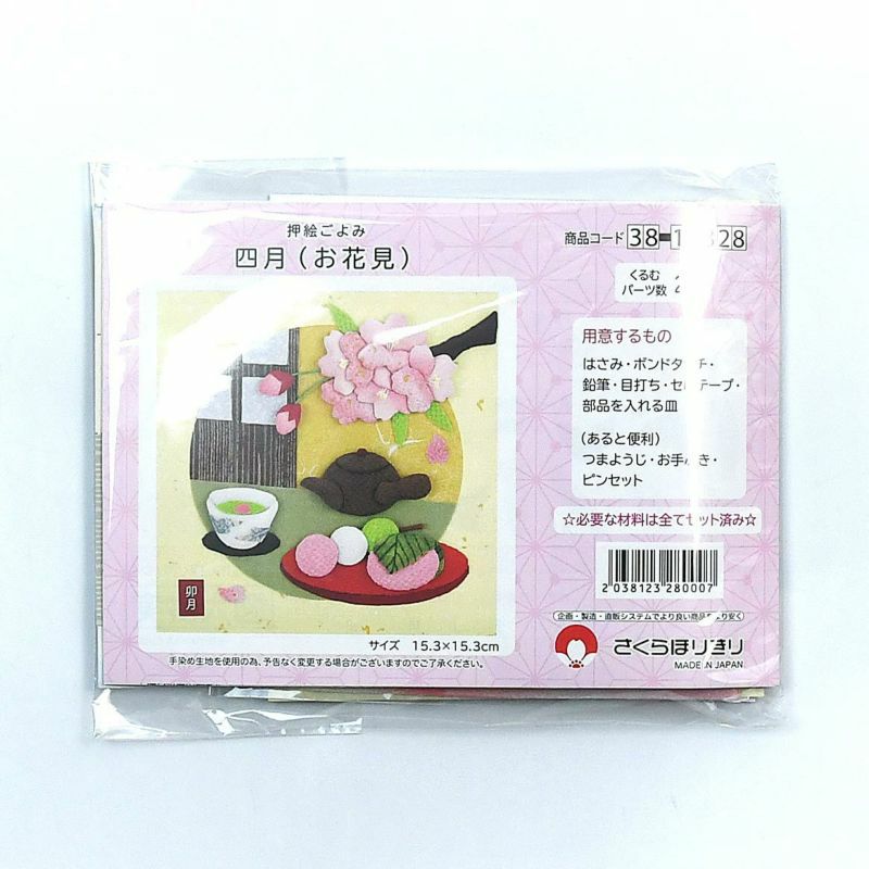 絵柄の左下の落款は「卯月」「四月」「文字なし」の3種類から選んで貼ることができます。説明書から切り離せるようになっています。