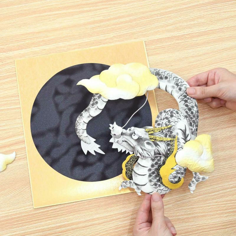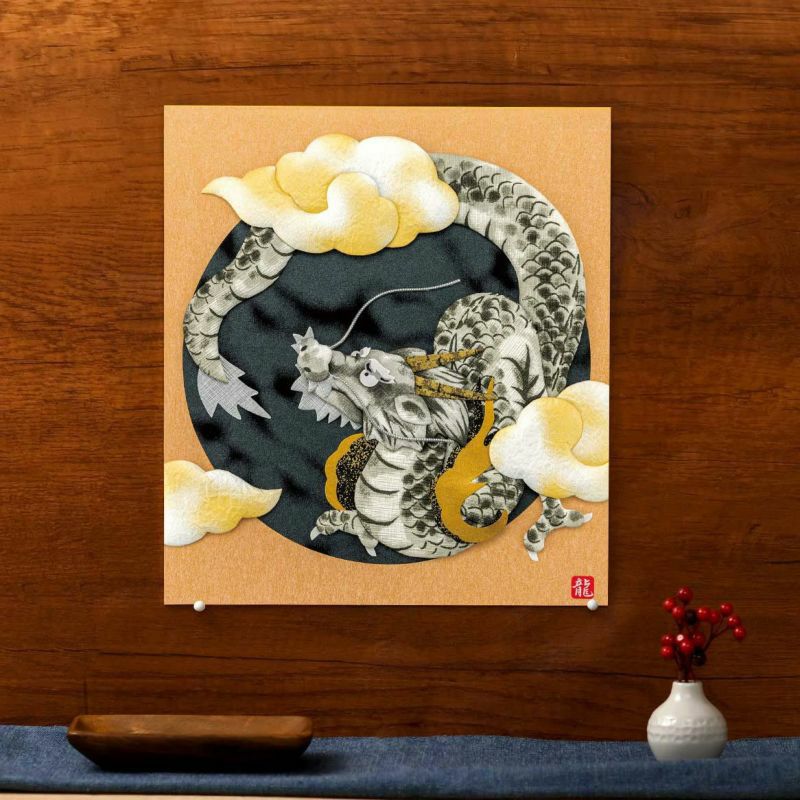 色紙は、龍が引き立つように黒ぼかしの友禅を使用したさくらほりきりオリジナルのものを使用しています。