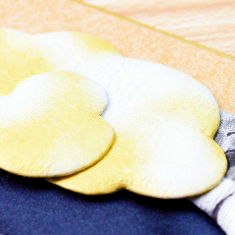 - 型抜きパーツを部品ごとに外し、指定のもみ和紙の真ん中(裏)に貼ります。