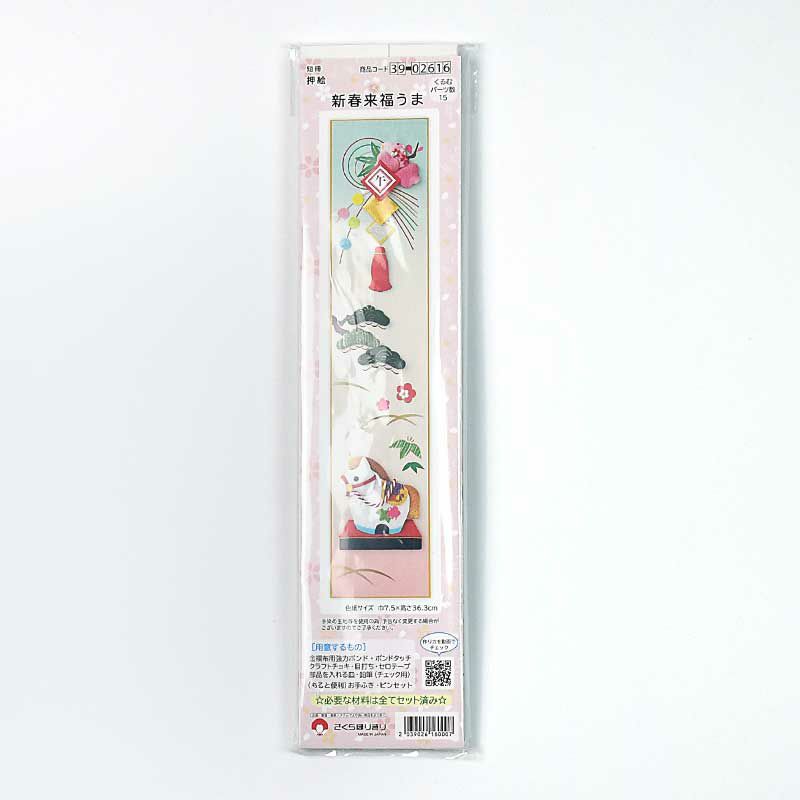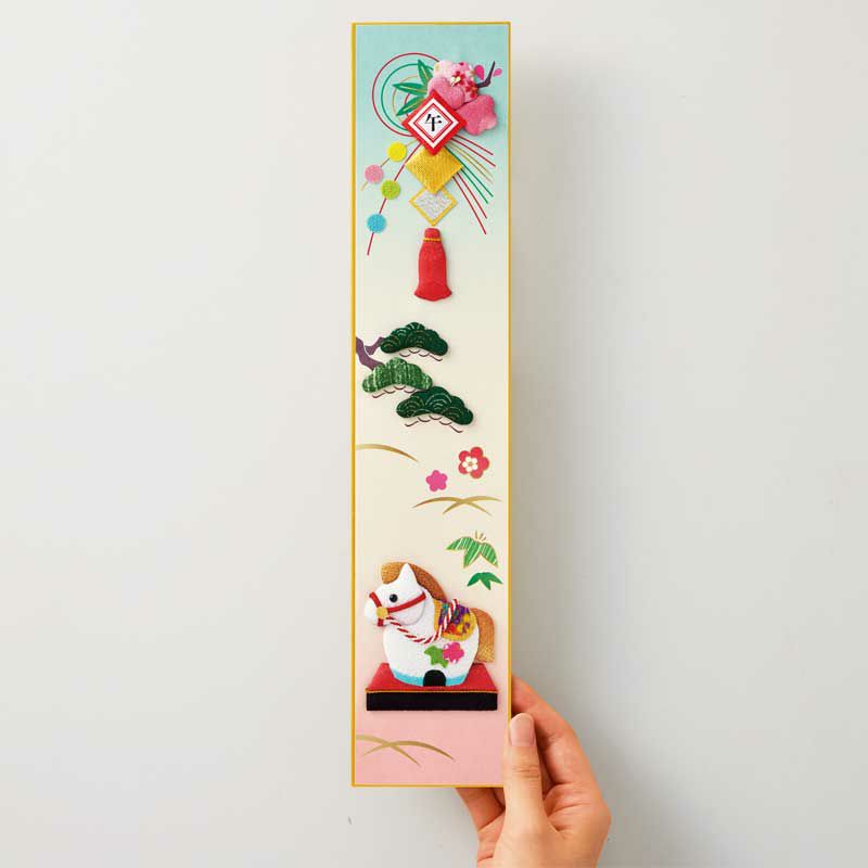 水引の飾りには「午」の文字を貼り、新年を祝う縁起の良い作品に仕上げます。
