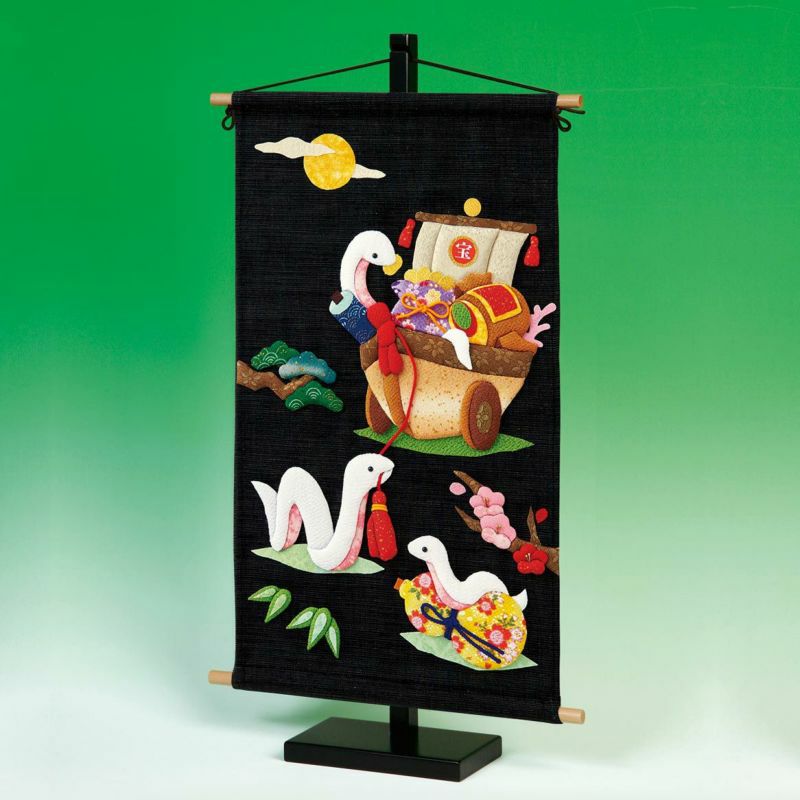へびの腹や宝船など所々に金彩の入ったちりめん布を使い、華やかに仕上げます。
