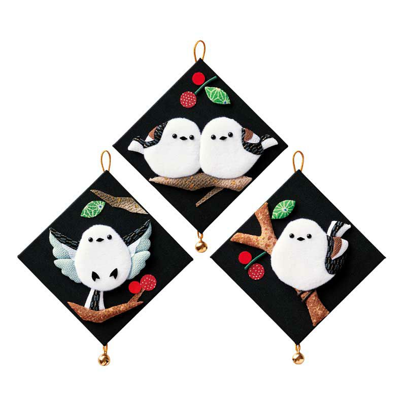 一つでも、三つ繋げても飾れるところが人気の押絵で作る三連タペストリー。「雪の妖精」シマエナガの、小枝に止まったり軽やかに飛んだりするいきいきとした姿を一つひとつ作ります。可愛らしい魅力いっぱいでプレゼントにも喜ばれます。