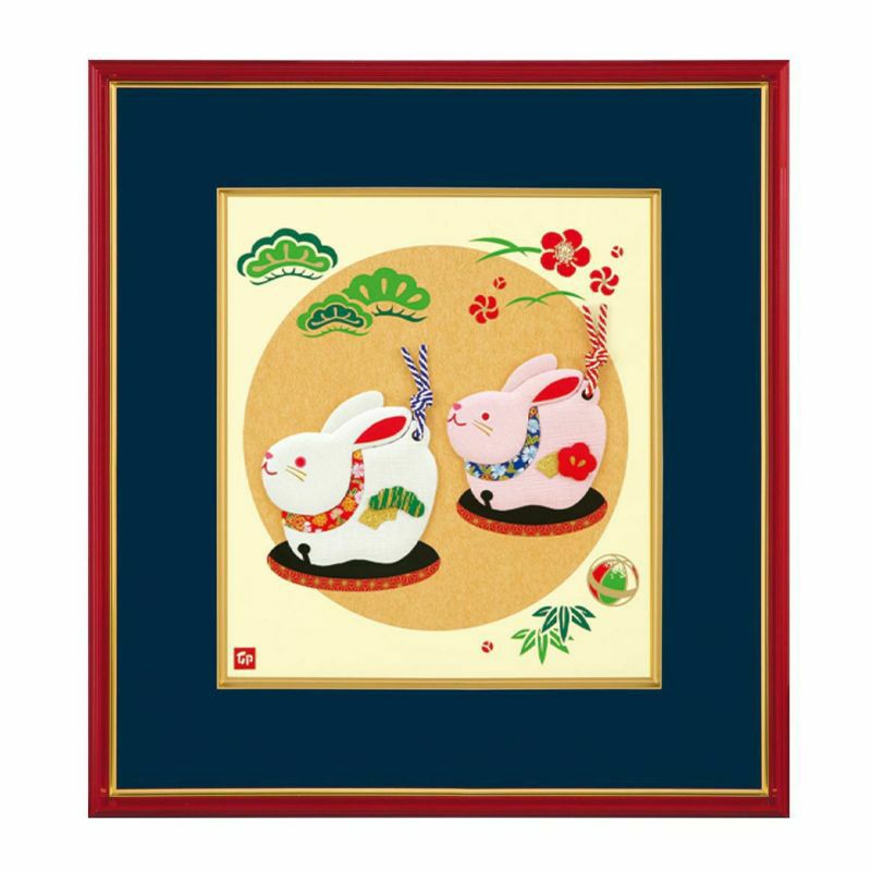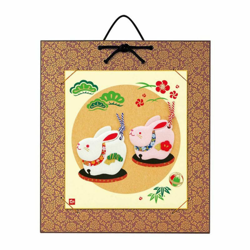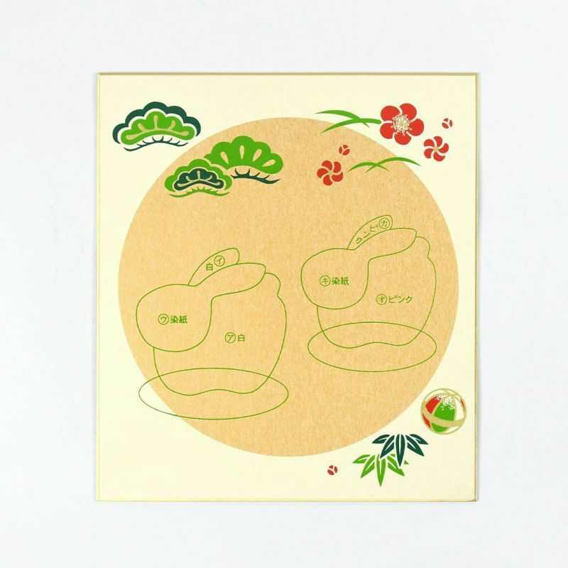 清楚な白と、柔らかな桜色のうさぎが愛らしい土鈴をモチーフにした色紙飾りです。新年のお部屋にいかがですか?