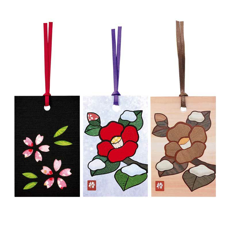天然木で仕上げる椿の絵柄の栞は贈り物にもおすすめです。