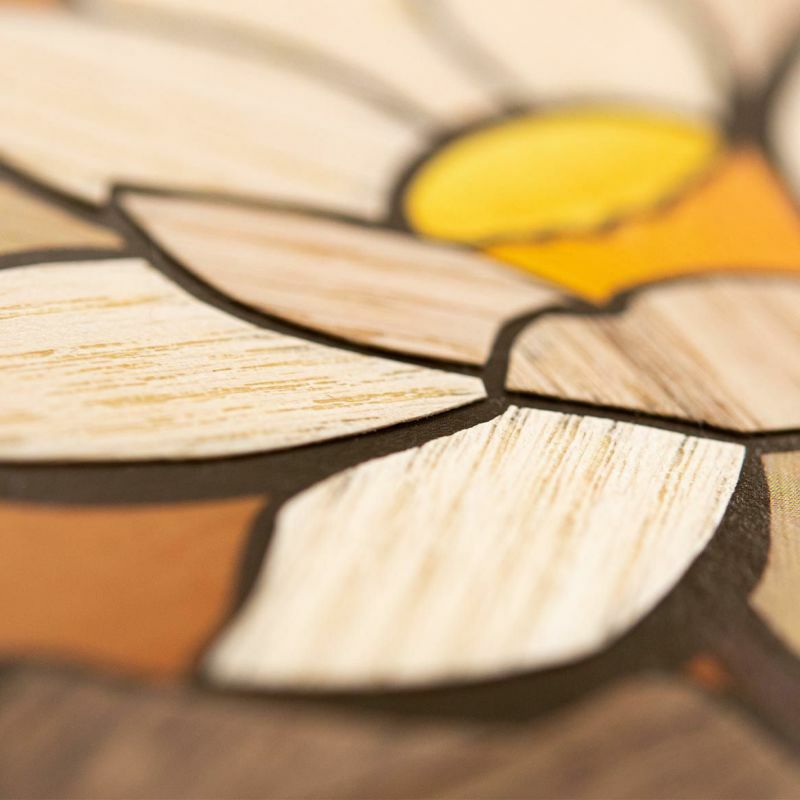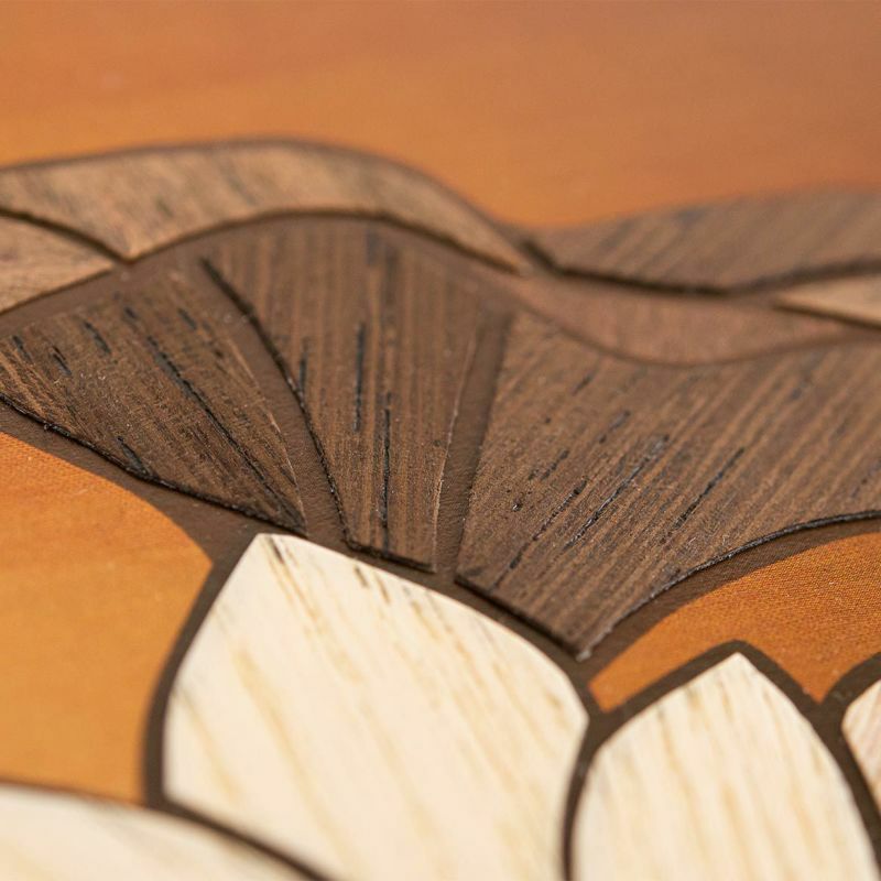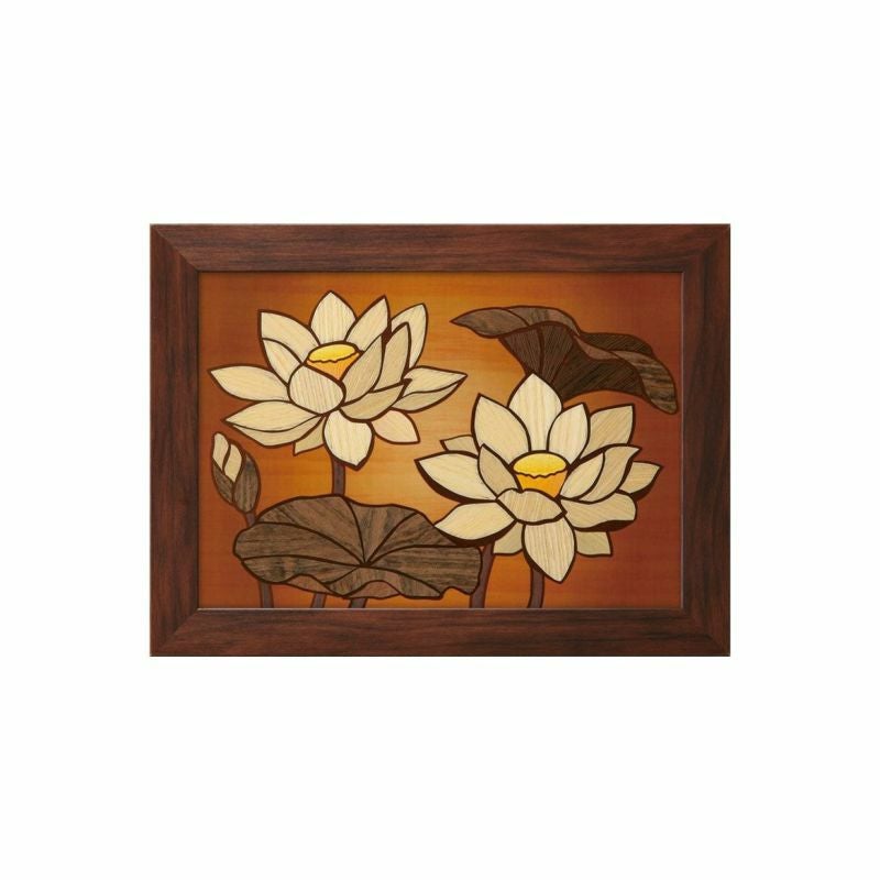 温かみのある木の風合いを生かして表現した蓮は額に入れて飾ると、お部屋のインテリアにもなり素敵です。