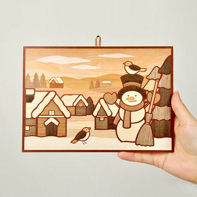 - 1で切り分けた両面シール型紙の裏紙をはがし、指定の木のシートの裏に貼ります。