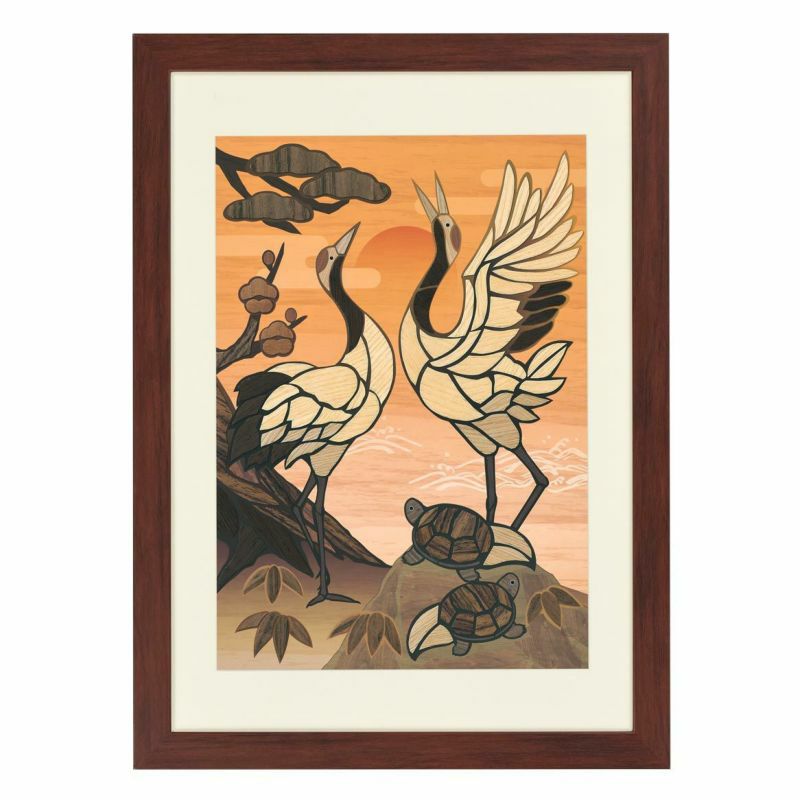 温かみのある木の風合いを生かして表現した鶴亀は、別売りの額に入れて飾るとお部屋のインテリアにもなり素敵です。