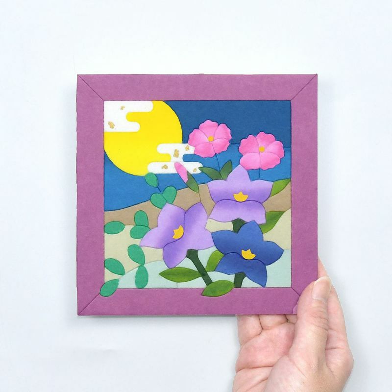 職人が一枚一枚染めあげた国内産の和紙を使用しています。「板締め染め」や「ぼかし染め」など13枚もの和紙を使って秋の花々を表現します。