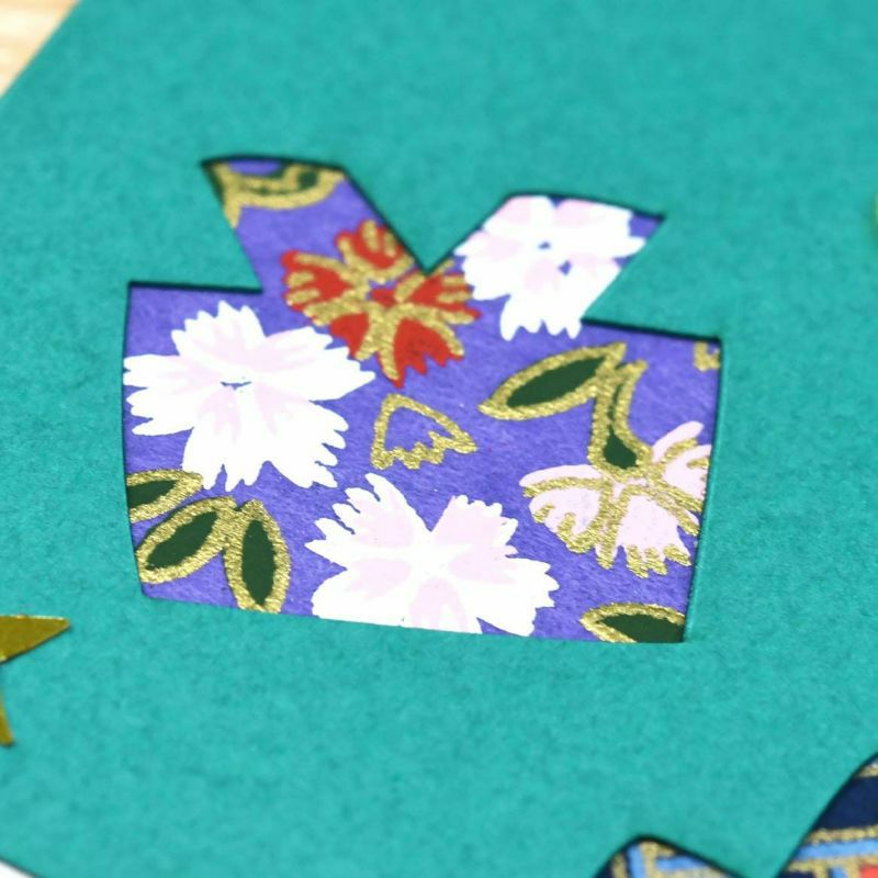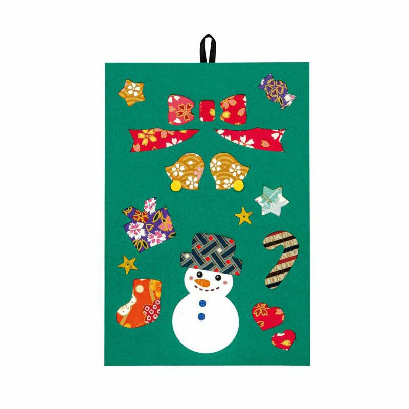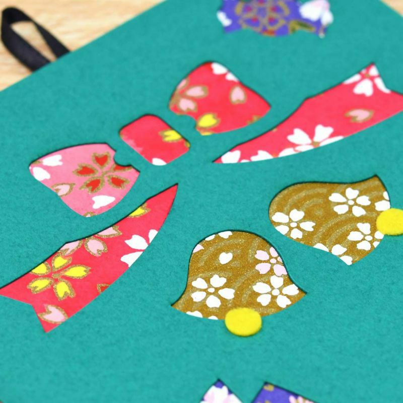 貼るのが楽しくなるような明るくて華やかな京友禅和紙を7枚使ってにぎやかなクリスマスを表現します。