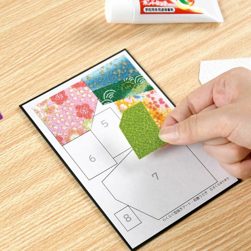 • 2で切り取ったパーツの裏にボンドをつけ、台紙に貼ります。