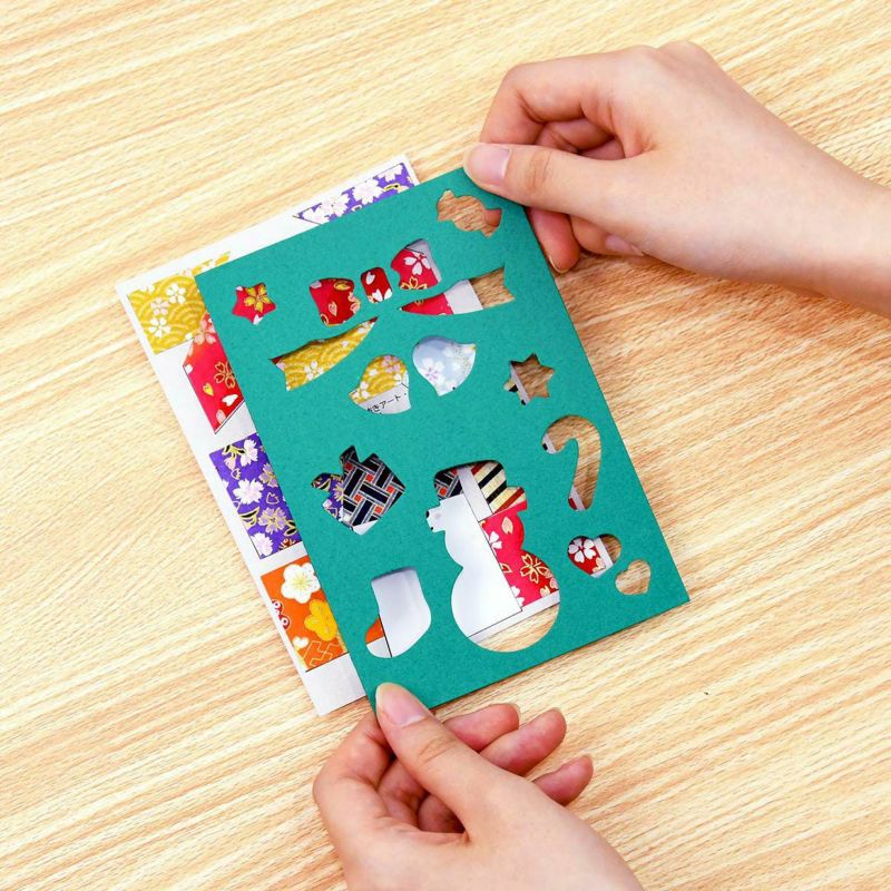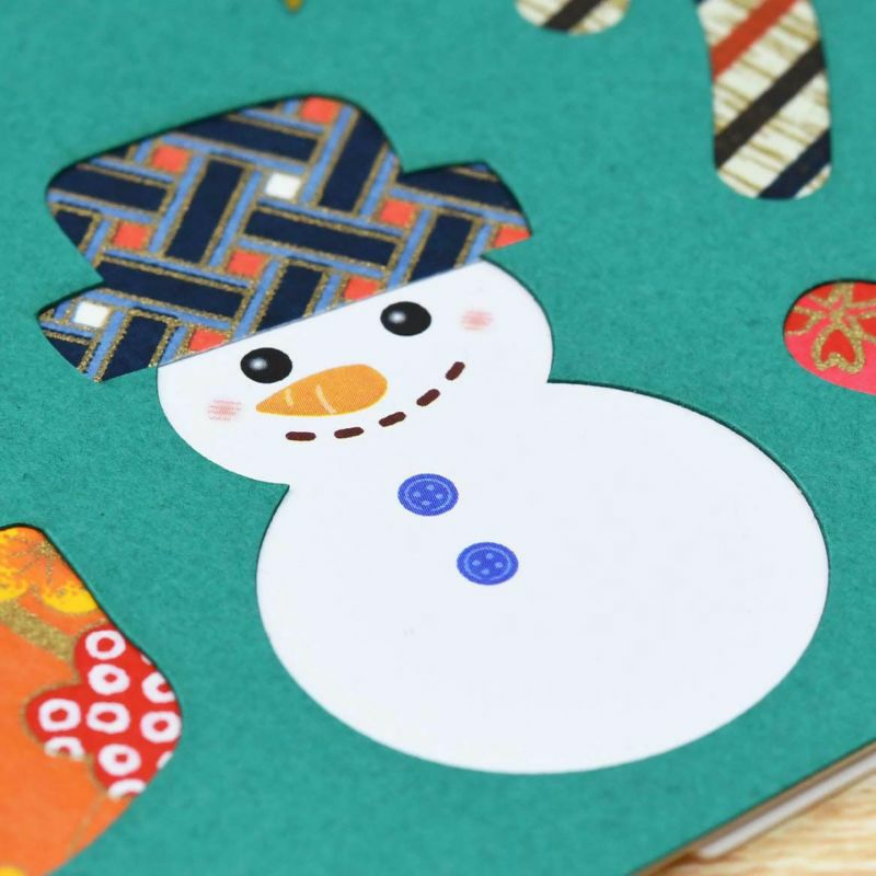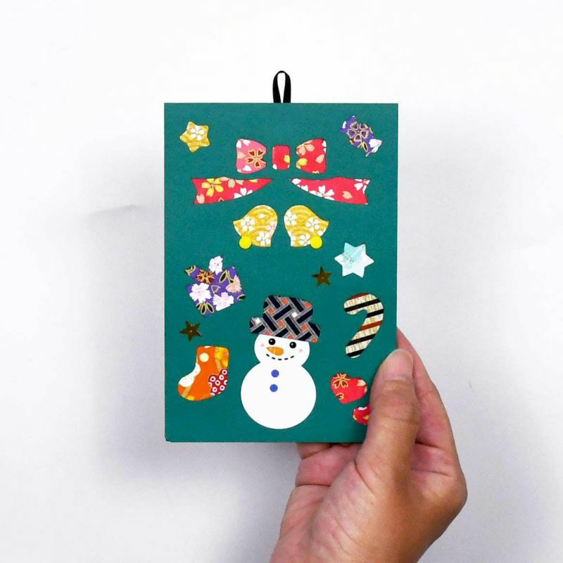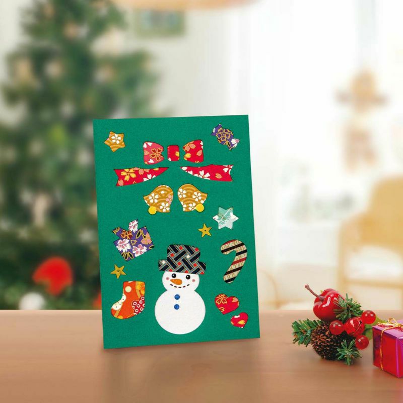 貼るのが楽しくなるような明るくて華やかな京友禅和紙を7枚使ってにぎやかなクリスマスを表現します。