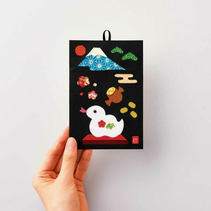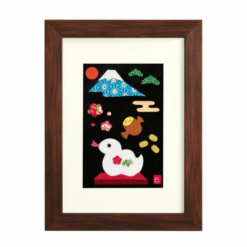 ちょろりと出した舌が可愛らしいへびと、色とりどりのちりめんで表現する縁起物が、お部屋に新年の趣を添えます。