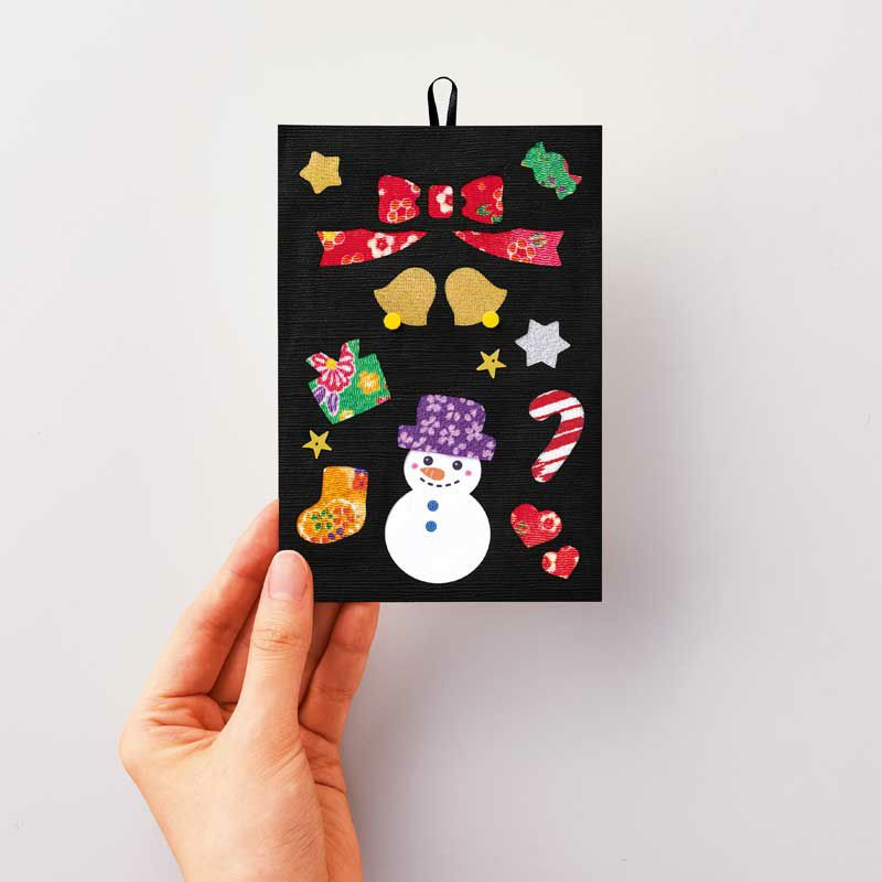 可愛らしい柄のちりめん布が黒地に映える賑やかなクリスマスの絵柄は、お部屋に彩りを添えてくれます。