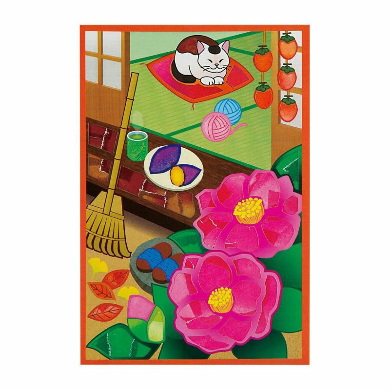サザンカをはじめ、秋のモチーフをたくさん散りばめました。どこかホッとする風景で、老若男女問わずどなたでも楽しくお作りいただけます。