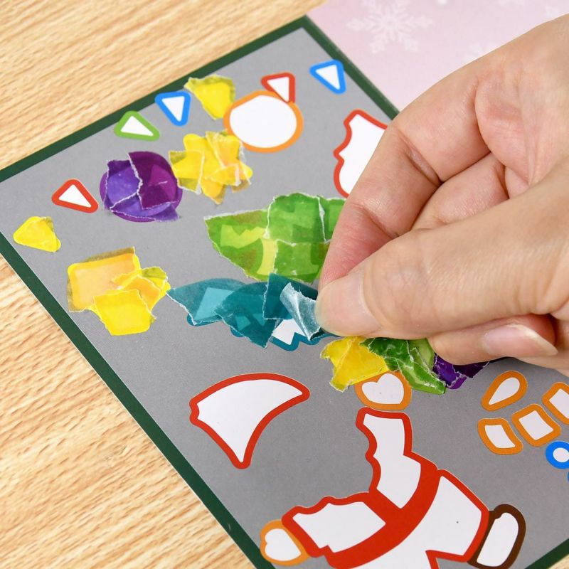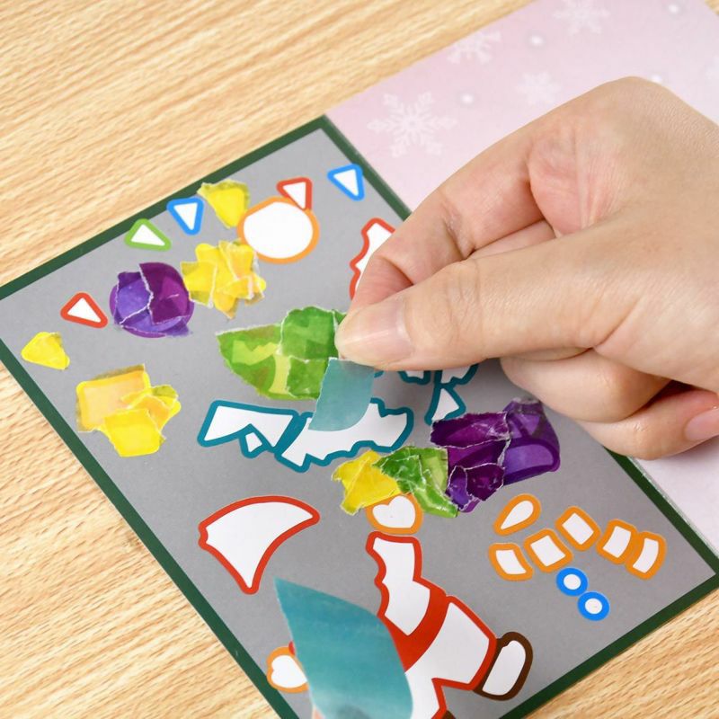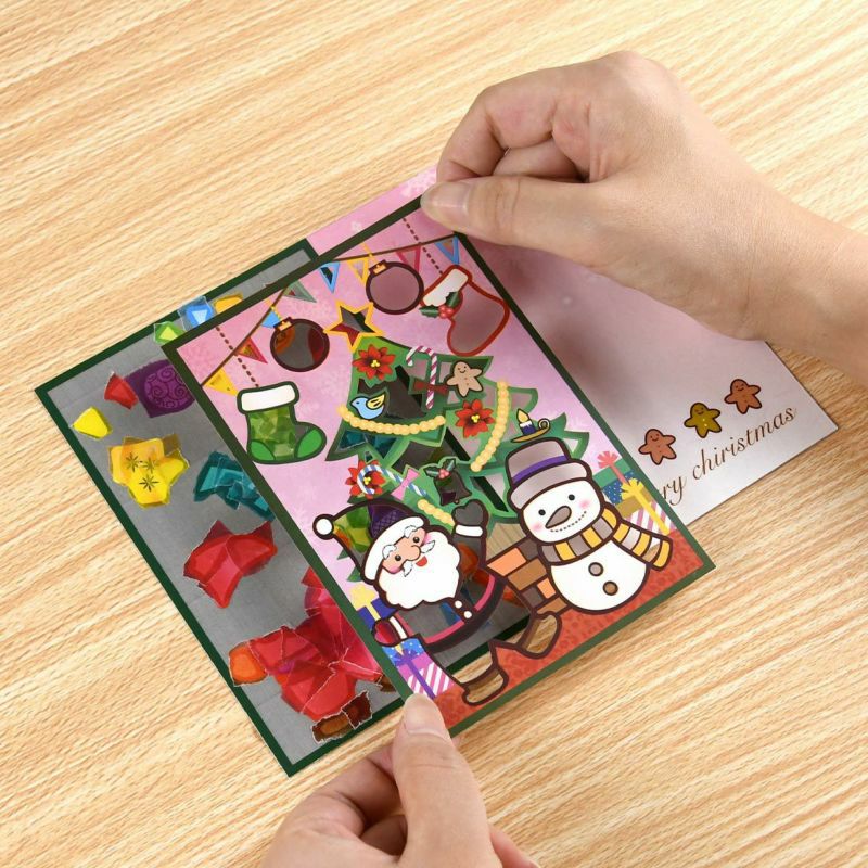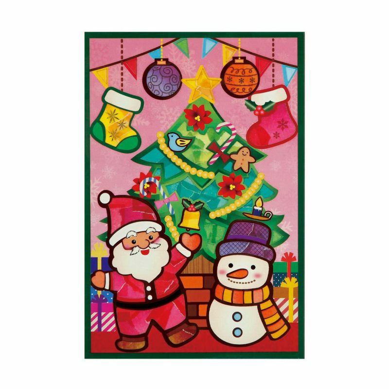 オーナメントや雪だるまの帽子などにはあらかじめ柄が印刷されています。シールを貼ると柄が透過し仕上がりが華やかになります。