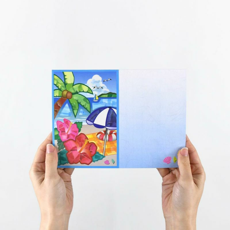 半透明のシールを貼ると模様が透けてみえるよう、細かな柄は下絵に印刷済みです。使用するカラーシールの色の種類が増え、今まで以上に多彩な表現ができるようになりました。