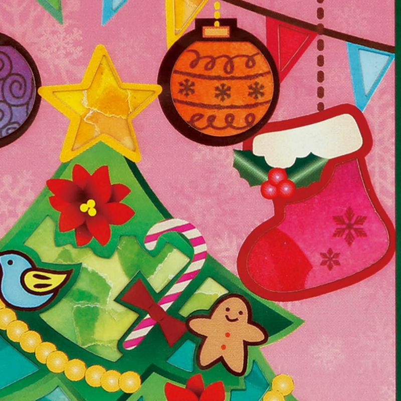 オーナメントや雪だるまの帽子などにはあらかじめ柄が印刷されています。シールを貼ると柄が透過し仕上がりが華やかになります。