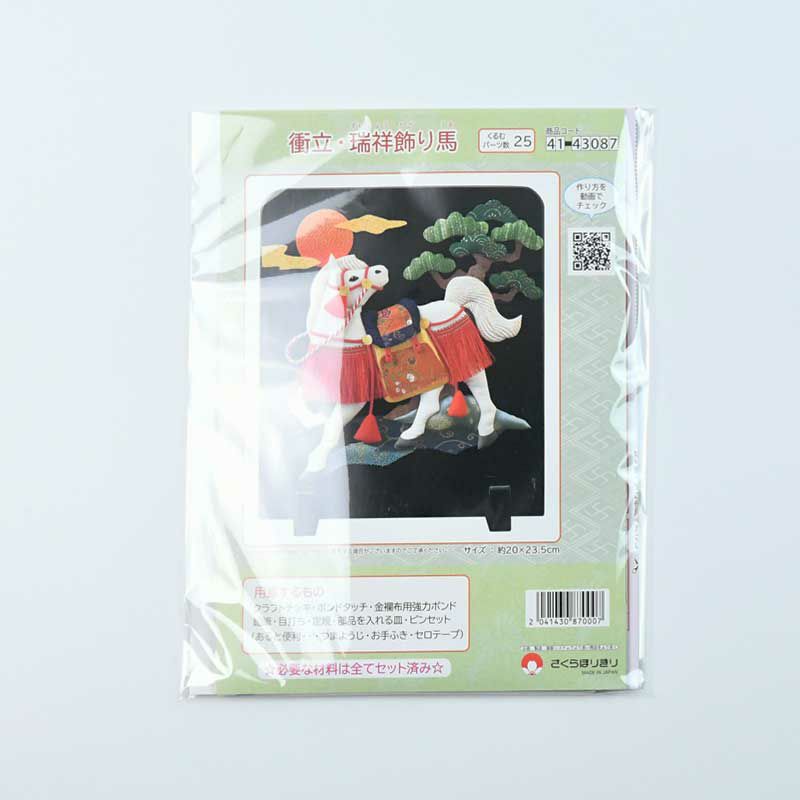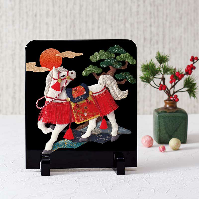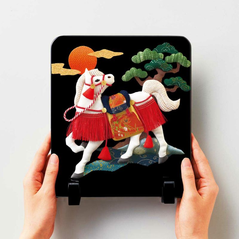 馬のボディには光沢のあるジャガード素材を、タテガミや尾には金襴布を使用して仕上げます。高級感のある仕上がりで、贈り物や文化祭などの作品としてもおすすめです。