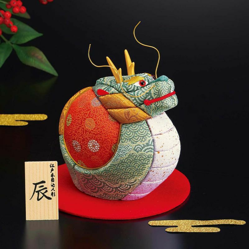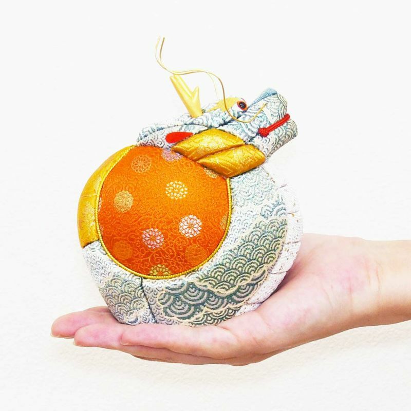 竜のボディには縁起の良い青海波柄の金襴布を使用しています。