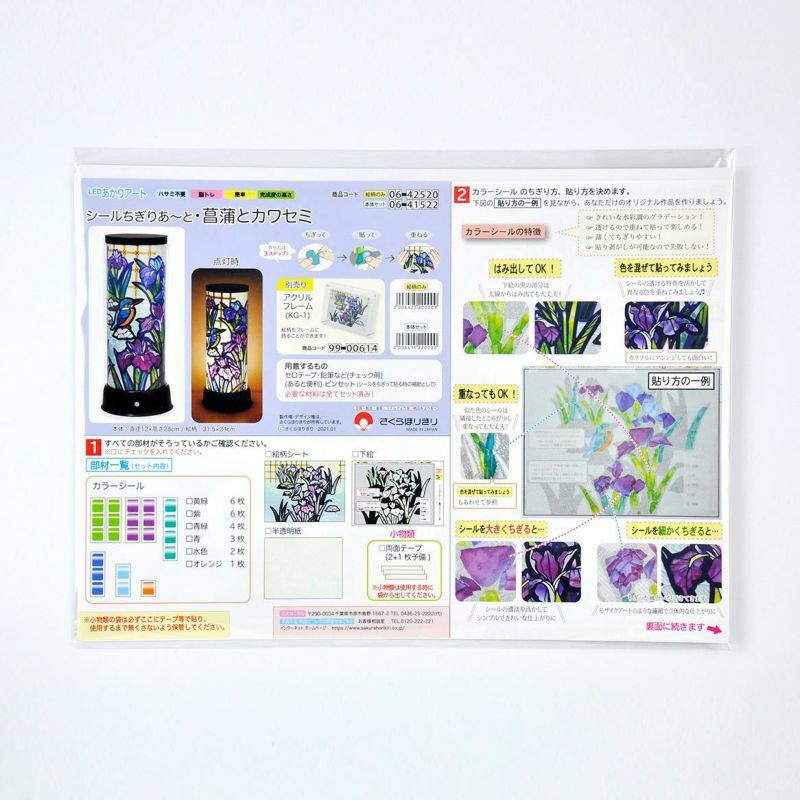 紫菖蒲と青菖蒲は、水色、濃い青、紫のシールを使うとともに、基となる透明シートにも部分的に色を入れてそれぞれ濃淡を表現しています。