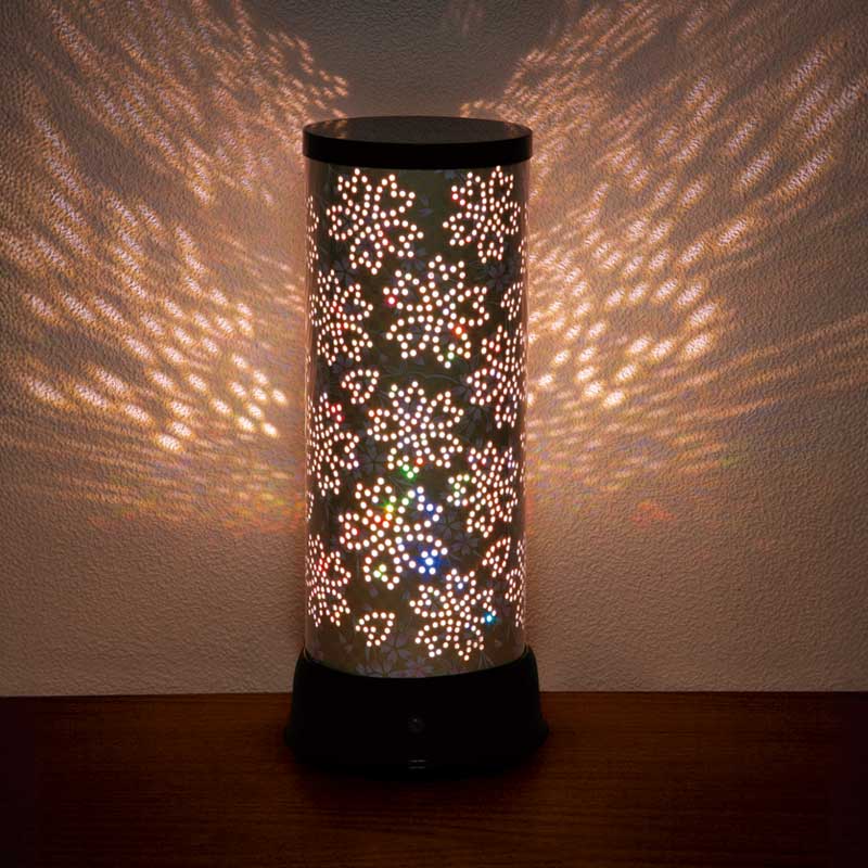 点灯すると、「桜華」の文様が浮かび上がります。日本の自然の美しさを表し、古来から神が宿るともいわれる吉祥文様です。