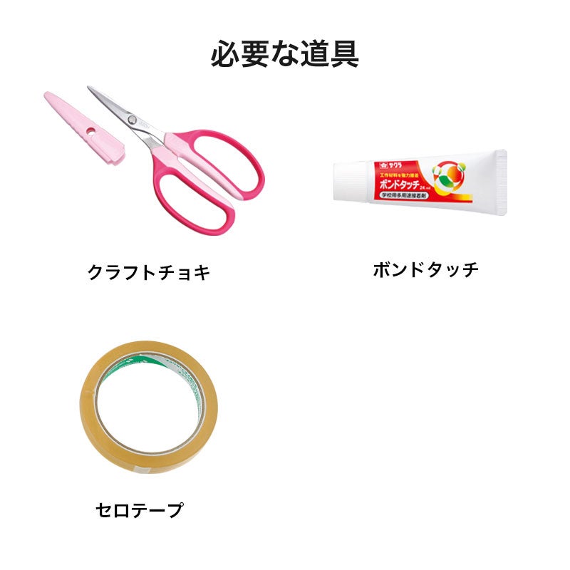 - クラフトチョキ、ボンドタッチ、セロテープ、洗濯バサミ