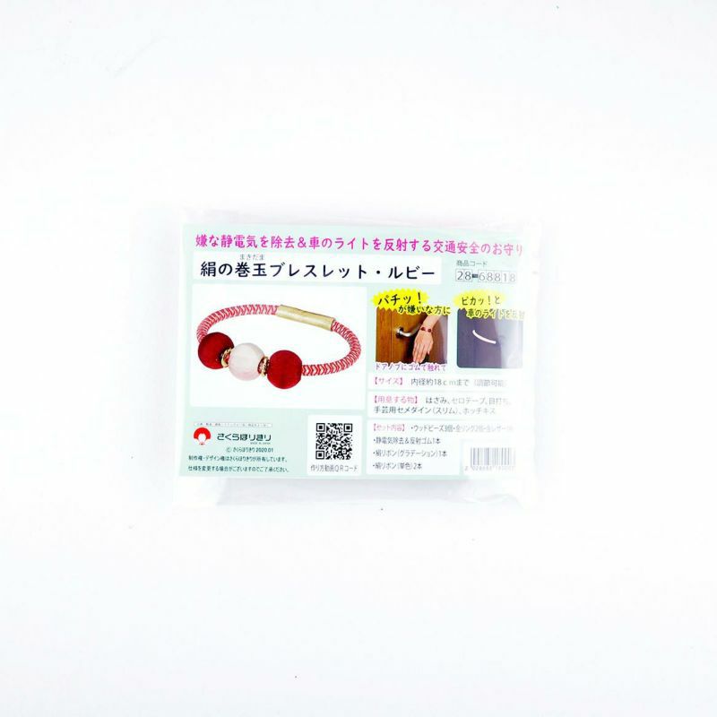 • 絹リボンをウッドビーズにクルクルと巻きつけるだけで簡単にパーツが完成します。